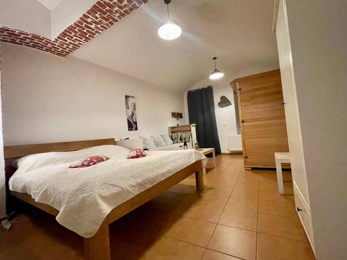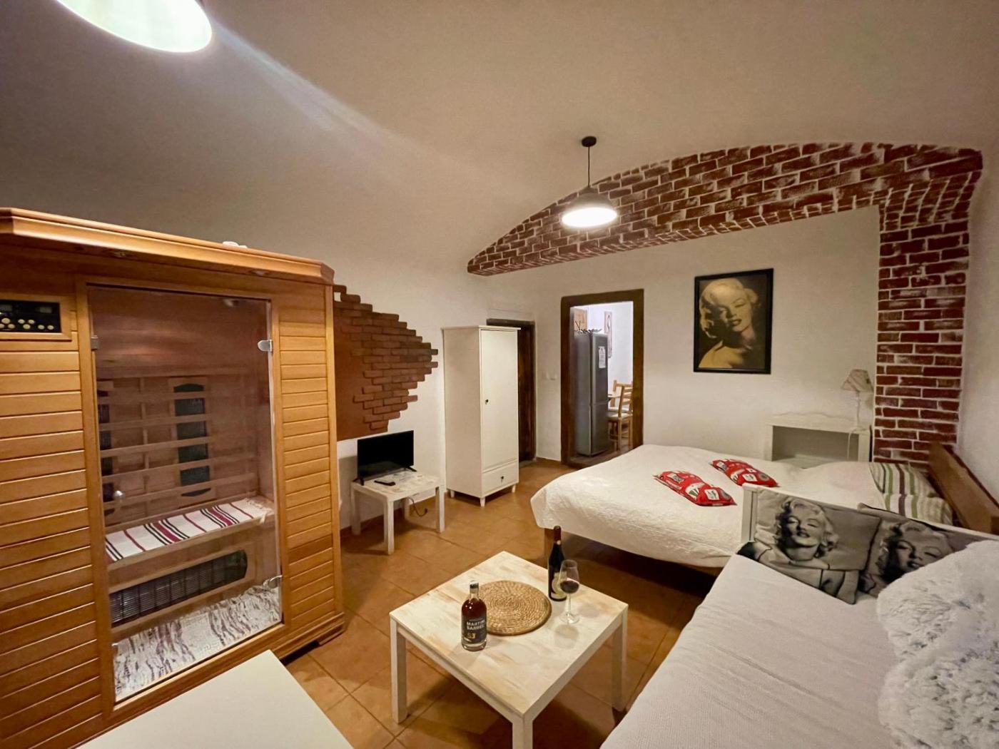 Double Room. Guests will have a special experience as the double room features a sauna. Providing free toiletries, this double room includes a private bathroom with a shower, a hairdryer and slippers. The well-equipped kitchen features a stovetop, a refrigerator, kitchenware and a microwave. The double room provides a private entrance, a tea and coffee maker, a seating area, a TV, as well as city views. The unit offers 2 beds.